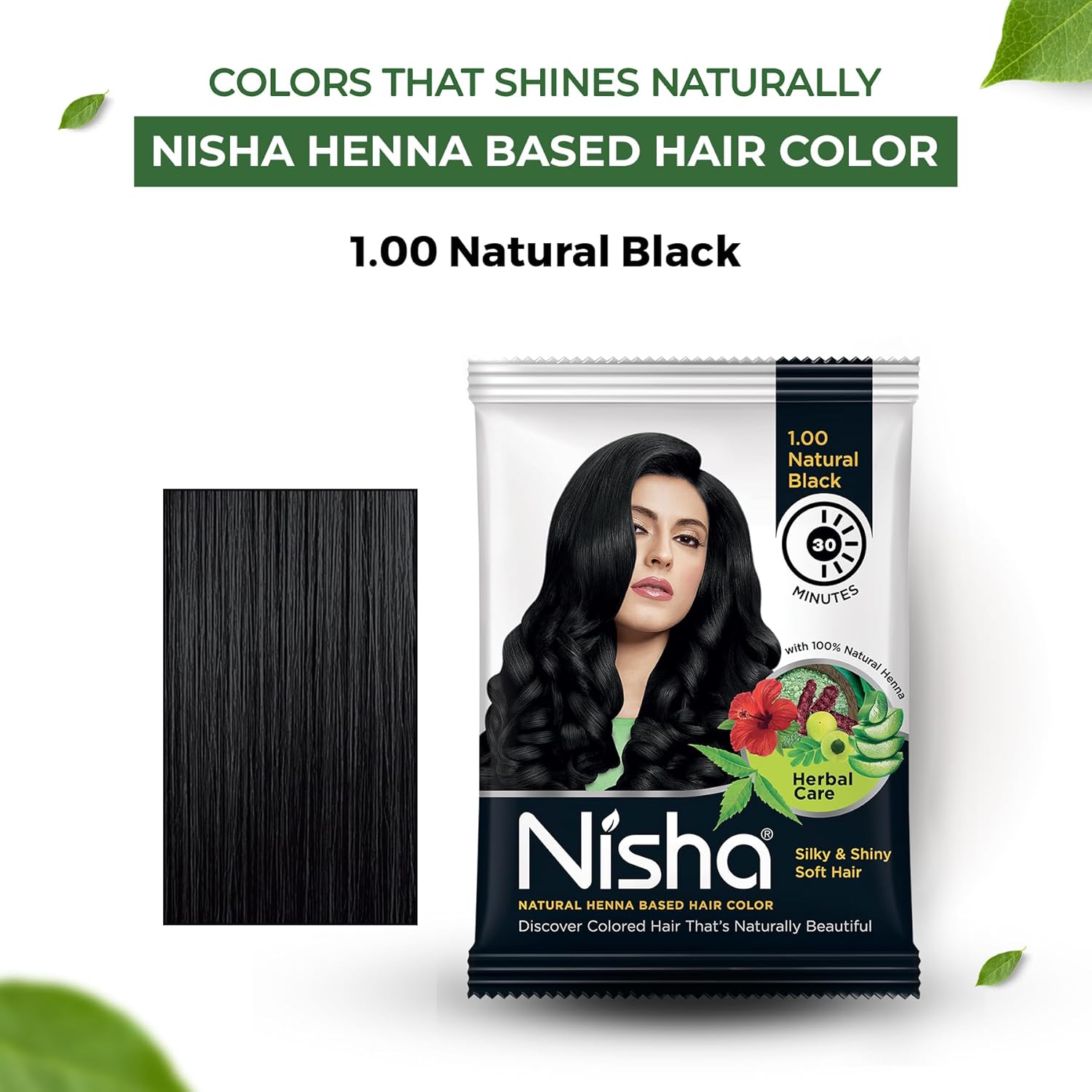 Nisha Natural Henna Powder For Hair Color, Natural Black Hair, Herbal Conditioning Hair Dye for Silky & Shiny Soft Hair Colour for Men & Women