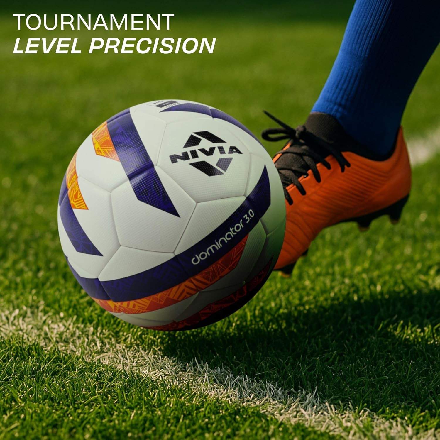 Nivia Dominator 3.0 Football, Match Ball, 32 Panels, Durable & Soft PU Leather, Butyl Fabric Wounded Bladder, FIFA Basic, to Play on Both Natural and Artificial Grass (Multicolor, Size - 5)